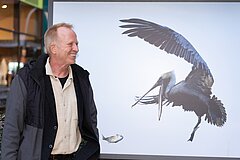 Jörg Modrow führte das Publikum mit einem Art Walk persönlich durch die Ausstellung. Dabei gab er spannende Einblicke in die Entstehungsmomente seiner Fotografien und erläuterte verschiedene Projekte, darunter seine Reportagereisen über Obdachlosigkeit oder die unvergleichliche Natur der Everglades. Auch seine fotografischen Anfänge fanden Erwähnung: „Mein Onkel aus Göttingen hat in mir damals, mit 13 Jahren, meine Leidenschaft für die Fotografie erweckt. Ich fand es magisch, im roten Licht der Dunkelkammer zu sehen, wie sich die Fotos des Tages entwickelten.“ Besonders schön: Sein Onkel ließ es sich auch nicht nehmen, aus Göttingen anzureisen und die Vernissage mitzuerleben. „Für mich ist es der schönste Beruf der Welt“, sagt Modrow heute, „Ich habe es immer als ein Privileg empfunden, durch meine Arbeit als Fotograf das Leben anderer dokumentieren zu dürfen, mit einer Aufgabe in fremde Länder reisen zu können und dort die tollsten Landschaften zu sehen und festzuhalten.“