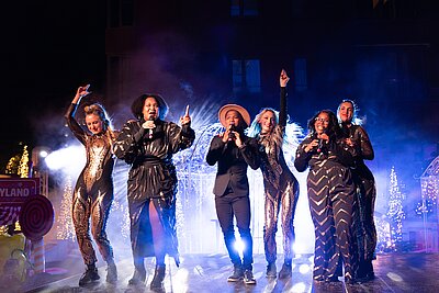 Ein besonderer Höhepunkt des Abends war der Auftritt von „Balu and friends“ aus Südafrika, bekannt aus dem Musical „König der Löwen“. Begleitet wurde das stimmgewaltige Trio von den „Berlin Showdancers“ in funkelnden Pailletten-Outfits. Gemeinsam sorgten sie mit klassischen Weihnachtsliedern und modernen Hits wie „Happy Day“ und „Celebration“ bei Groß und Klein für Begeisterung. Nebelmaschinen und eine Lasershow sorgten zusätzlich für Stimmung auf dem Überseeboulevard. Die weihnachtliche Dekoration und die festliche Beleuchtung der Stände und Wege rundeten das Erlebnis ab. Köstliche Leckereien und heiße Getränke von Punsch bis Glühwein sorgten für eine gemütliche Stimmung und die Gäste genossen die gemütliche Atmosphäre und Geselligkeit.